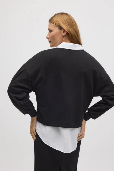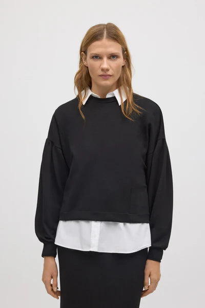 Questa felpa nera con maniche a sbuffo è il perfetto equilibrio tra comfort e stile contemporaneo. Realizzata in un tessuto leggero e morbidissimo, offre una vestibilità piacevole che segue le linee del corpo senza costringere. Le maniche a sbuffo donano volume e carattere, aggiungendo un tocco sofisticato al look. Versatile e facile da abbinare, è ideale per momenti di relax a casa, per il tempo libero o per creare outfit comodi ma curati, anche fuori casa. Un capo essenziale per chi cerca uno stile casual con un dettaglio originale.