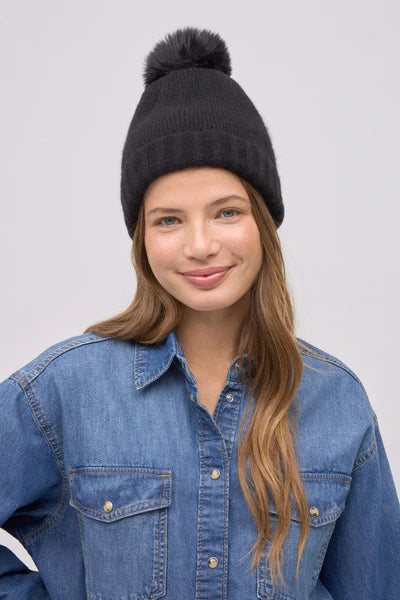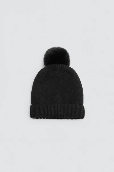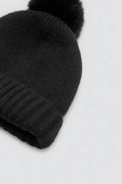 Cappello in maglia dalla texture morbida, perfetto per affrontare le giornate fredde con stile. Il grande pompon nero aggiunge un tocco giocoso ma elegante, mentre il design pulito e minimalista lo rende facile da abbinare a qualsiasi outfit. Un accessorio essenziale per un look moderno e caldo durante l’inverno.