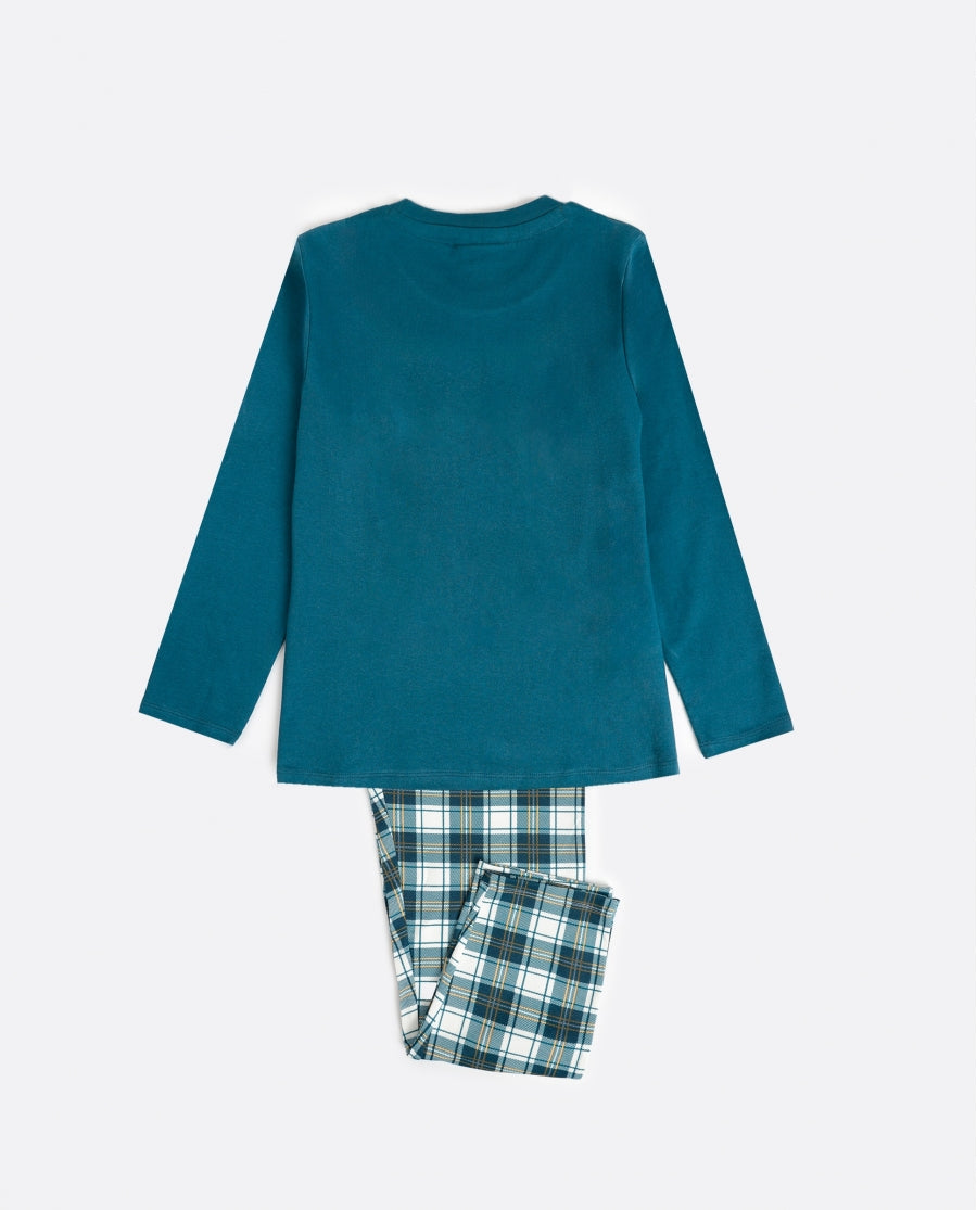 Pigiama in maglia di cotone con maniche lunghe, girocollo e pantaloni lunghi. La T-shirt in maglia interlock presenta dettagli in rilievo ed è personalizzata con il marchio Peanuts. I pantaloni, in maglia stampata, hanno una cintura regolabile.