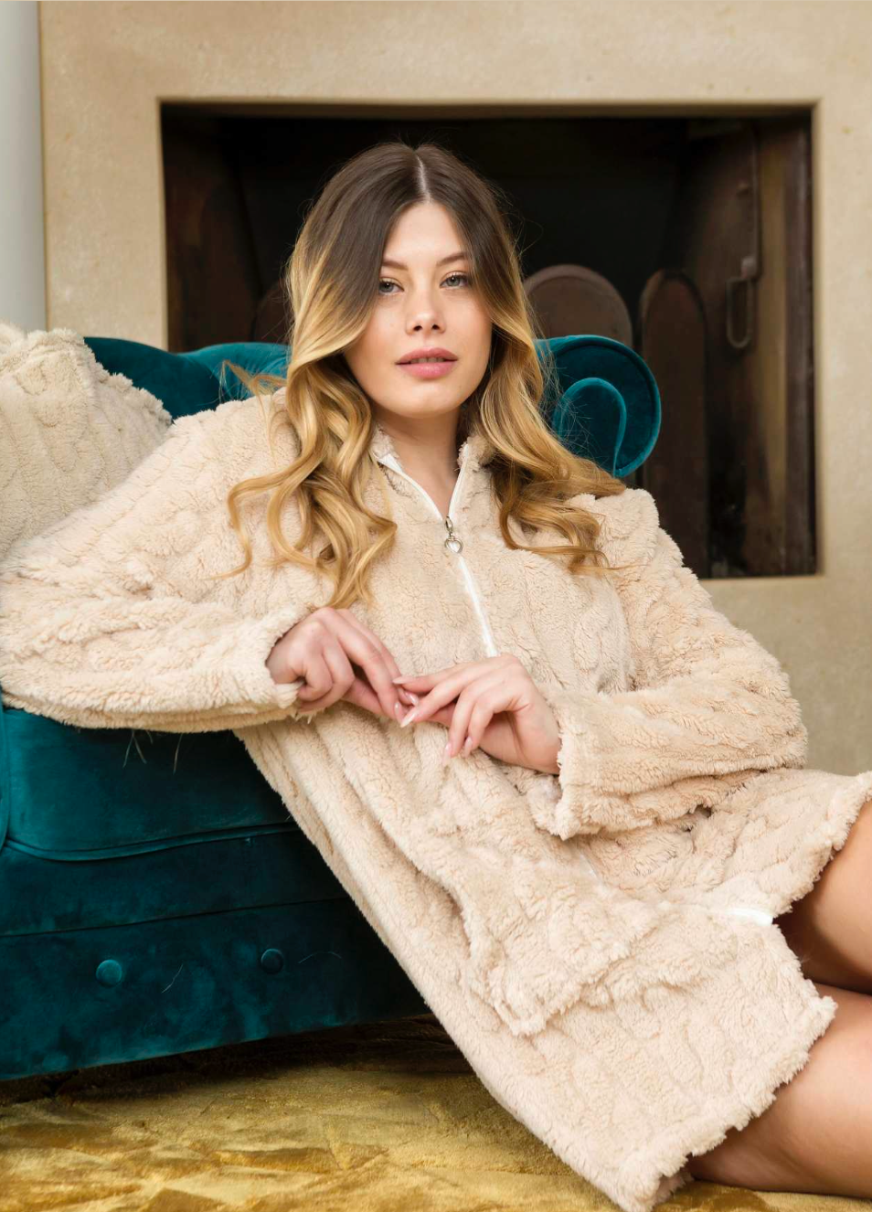 Il set VE0478 di Milk & Honey unisce comfort, calore e stile: una vestaglia aperta da donna in morbidissimo jacquard sherpa, ideale per la stagione fredda e per rilassarsi a casa. La vestaglia, soffice e avvolgente, è progettata con zip frontale, trama effetto maglia e vestibilità ampia per massimo benessere. La borsa coordinata in tessuto sherpa jacquard permette di portare ovunque il set o offre una soluzione elegante per riporlo. Disponibile in nuance raffinate come beige, polvere e malva, questo completo è perfetto sia come coccola quotidiana, sia come regalo pratico e ricercato. Lavabile facilmente, mantiene la morbidezza anche dopo numerosi lavaggi, assicurando calore e delicatezza sulla pelle.